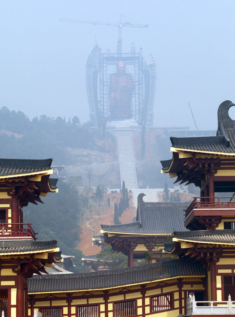 2011年11月3日,江西九江,星子县在建的世界最高阿弥陀佛铜像——东林大佛基本完成,正在拆除脚架。东林大佛坐落江西庐山脚下,由佛教净土宗发源地东林寺投资兴建,大佛高48米,预计明年4月举行开光庆典,届时将成为又一佛教文化旅游胜地。东林大佛捐款护持账号:http://dafo.donglin.org/juankuanfangshi/